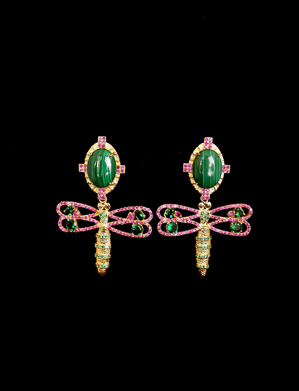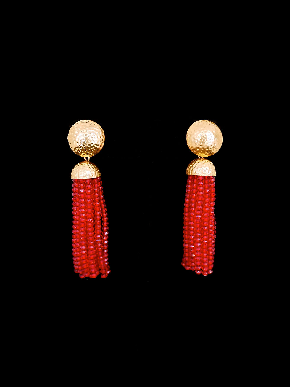 Amazonite Red Gold Hammered Pineapple Tassel Earrings